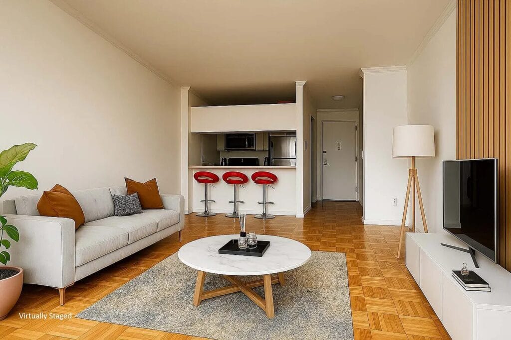 And every so often, a home comes along that captures everything this neighborhood stands for. Residence 6H at 300 Albany Street is one of those places. Perched high above the city, this one-bedroom, one-bath apartment offers both space and skyline views. The layout easily fits a king-sized bed, a large sectional, a dining area—and still leaves room to breathe. It’s that rare NYC apartment where comfort and calm actually coexist.