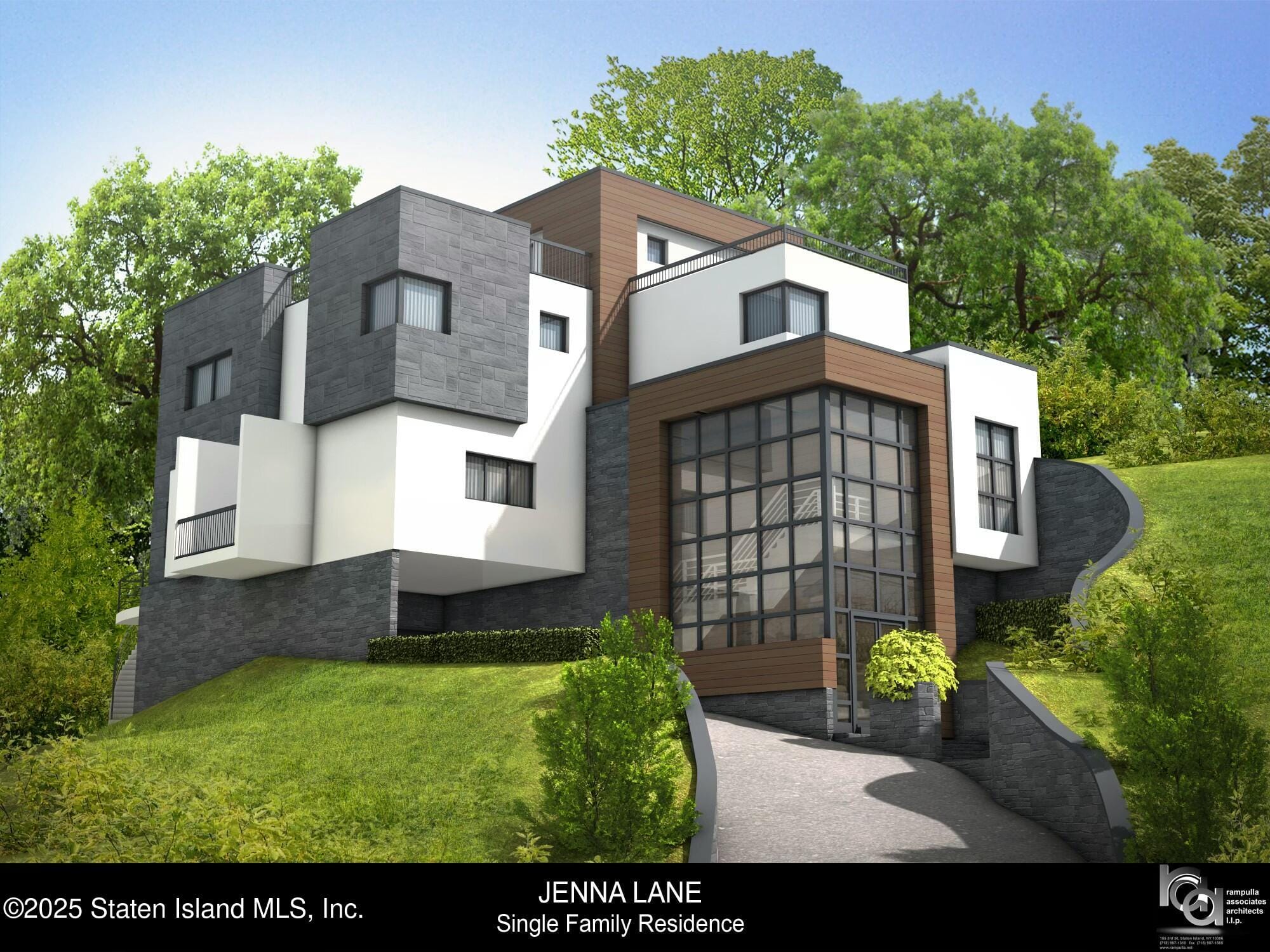 This is a rare opportunity to live in a truly one of kind magnificent custom contemporary mansion located on a quiet, private gated cul-de-sac in the prestigious Forest Manor Estates of Todt Hill. iddealically situated on a immense 21,245 square foot (0.488 acre) hillside property, this exceptional residence is shortly to be built and offers the chance to step in and complete your dream home. The design incorporates multiple levels that seamlessly walk out to a tranquil backyard, making the most of the natural terrain. This is the last undeveloped parcel in this exclusive community, which features just four other grand homes. The location is ideal—just above Richmond Road’s popular dining and shopping district—with direct access to city bus transportation. Planned as almost a NET 7,000 square foot contemporary residence, the home can includes an elevator from the garage level to the rooftop. It offers five spacious bedrooms, 5 full, 1three-quarter and 2 half bathrooms, a private office, and a rooftop studio complete with 1400 sft magnificent terrace with magnificent 180 degree views of the Narrows to the Atlantic highlands. Agent is owner. The main level boasts a formal open-concept living and dining room, an oversized chef’s kitchen with an informal dining area, a walk-in pantry, and a terrace. The family room that connects to the the kitchen, features 20 linear feet of glass sliding doors that open to an expansive patio and serene backyard, creating a seamless indoor-outdoor living experience. These beautiful views are also visible from the kitchen. This floor also includes a guest suite, a private office, and a laundry closet and a 2 powder rooms. On the second floor, the luxurious primary suite features picture windows overlooking the peaceful, wooded yard, a large private deck that can have a custom built in ground pool , spacious co-walk-in closet offering over 200 square feet of storage, a spacious en-suite bathroom, and a lounging area that can be outfitted with a coffee bar. Also on this level are three additional large bedrooms each with ample walk in closet space and its own en-suite bathroom. The third floor rooftop studio is a flexible space that can be used as a movie room, gym, yoga studio, music room, playroom, or additional guest area. It includes an auxiliary kitchen, a three-quarter bathroom, and opens to an impressive 600 square foot private green space – perfect for entertaining while enjoying clear views of the majestic Verrazano Bridge.